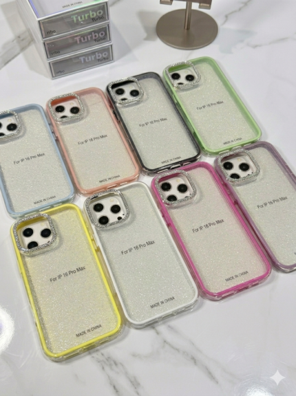 Capa Borda Colorida com Glitter Camera Metálica Strass