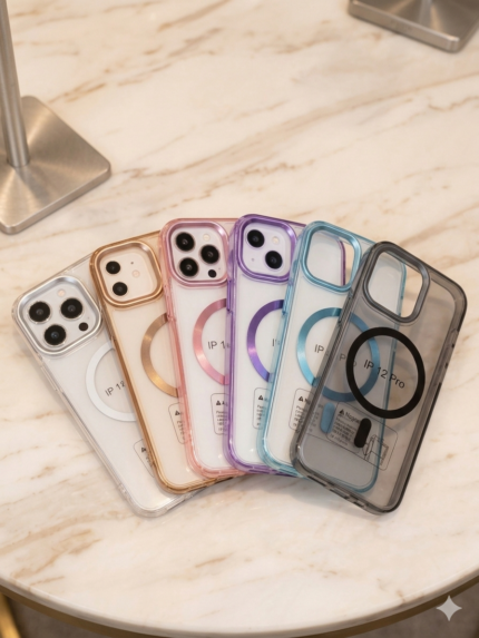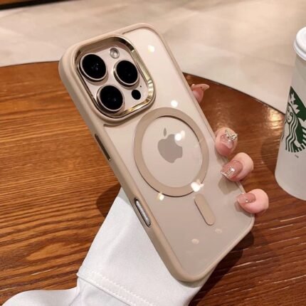Capa Clear Transparente Borda Colorida MagSafe Metalizada na Câmera