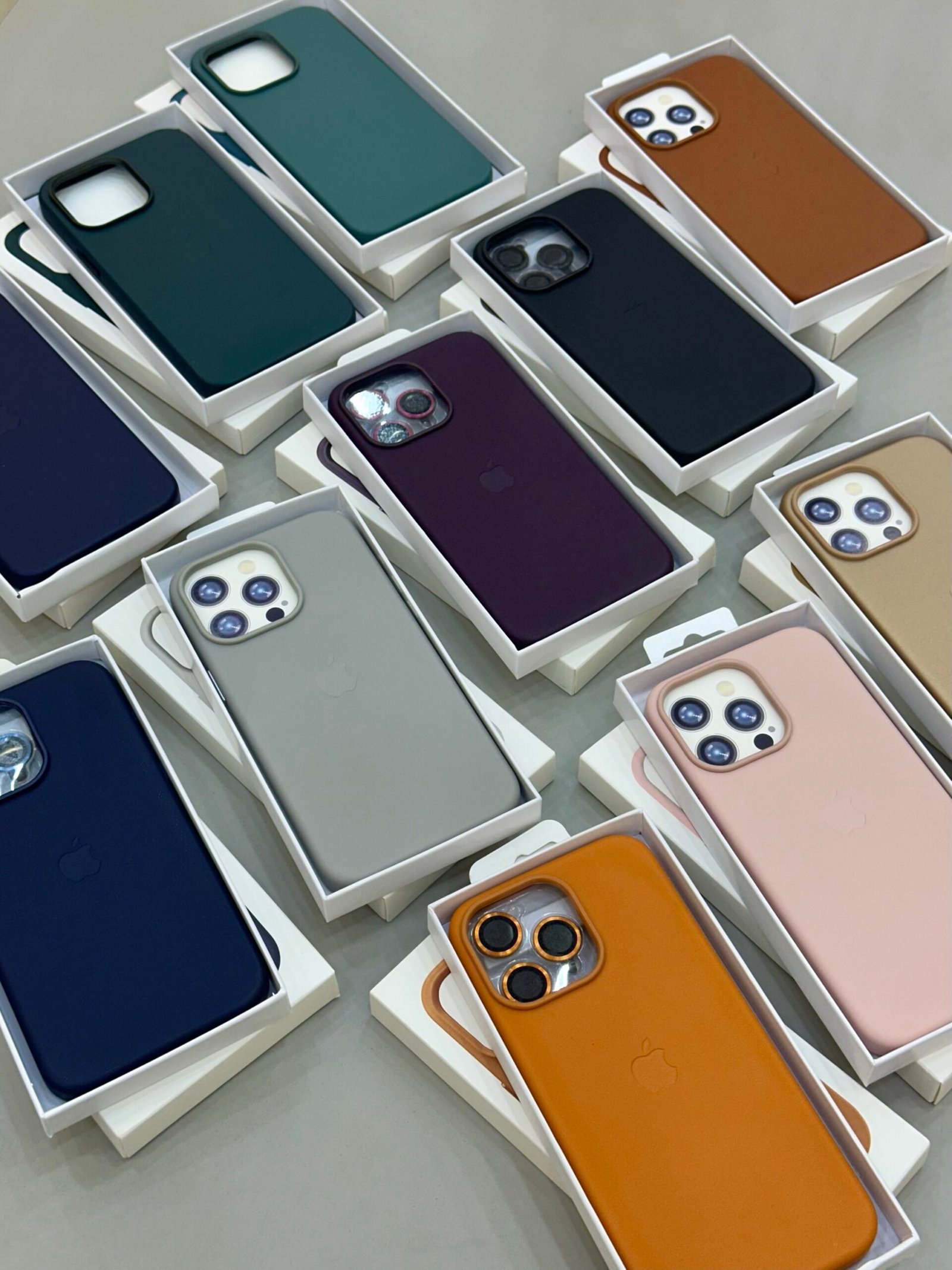 Capa Premium Borda de Couro com MagSafe Suporte na Câmera e Película de Lente de Câmera