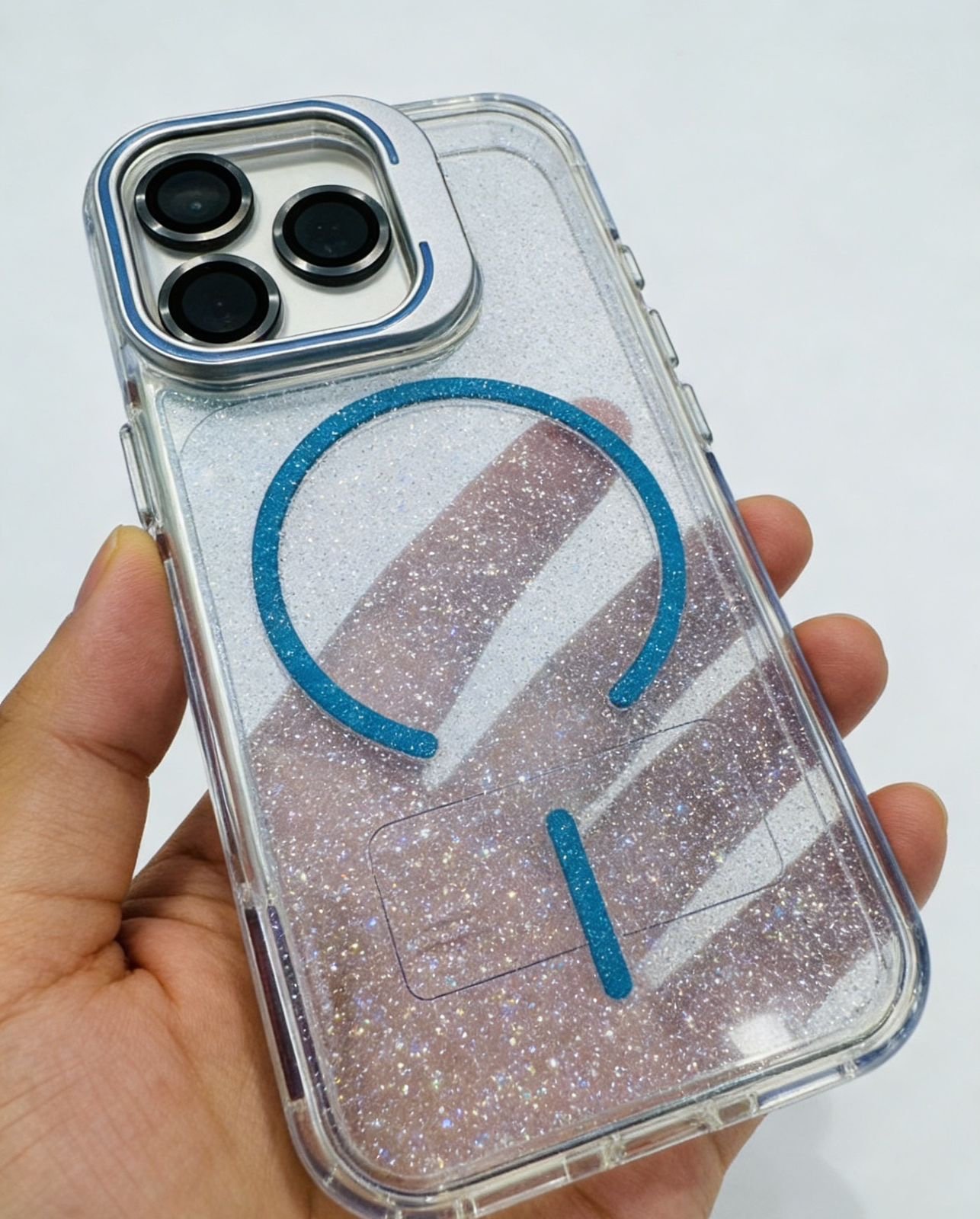 Capa Premium Glitter MagSafe Linha 17 Suporte com Película de Lente