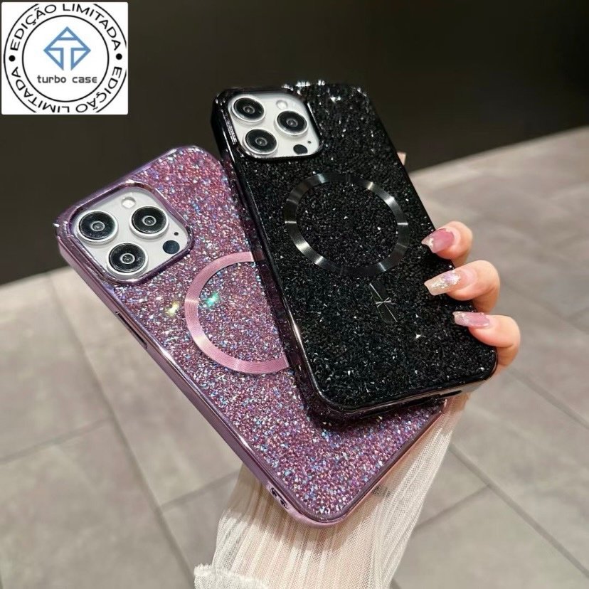 Capa Premium Glitter MagSafe Linha 17 Suporte com Película de Lente
