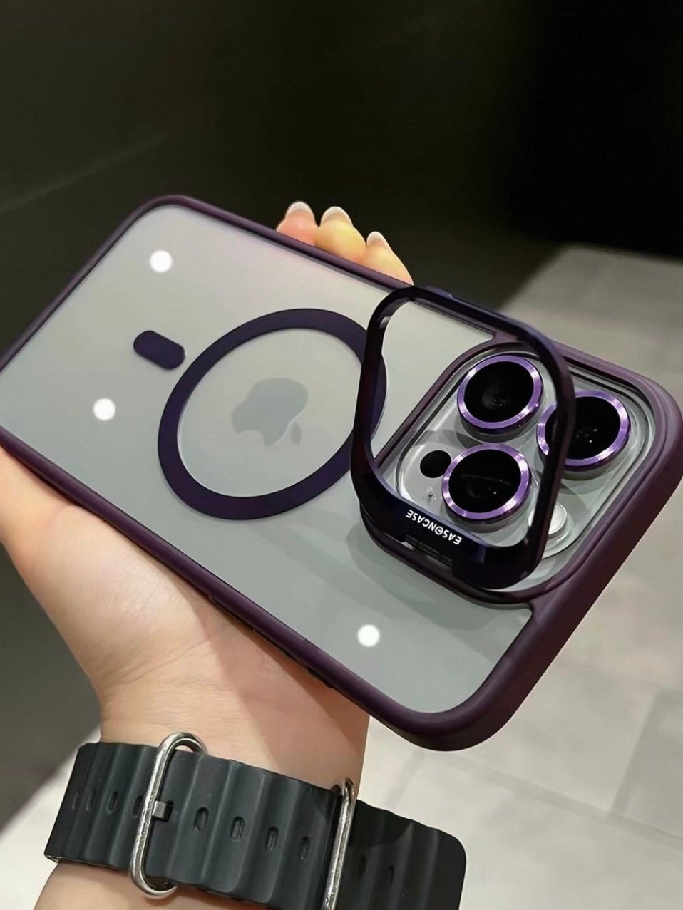 Capa Premium Acrílica Magsafe Linha 17 com Suporte na Câmera e Película de Lente