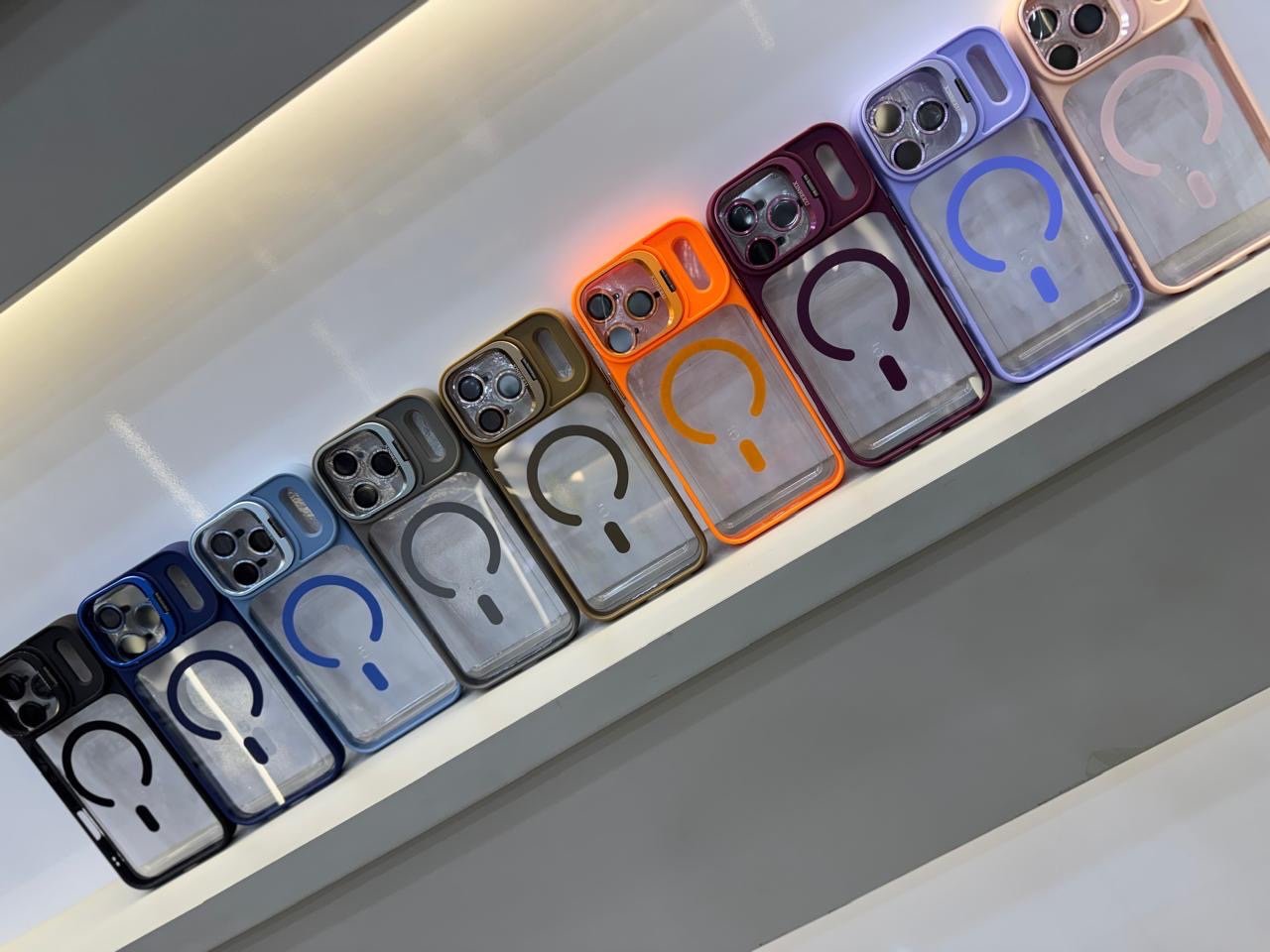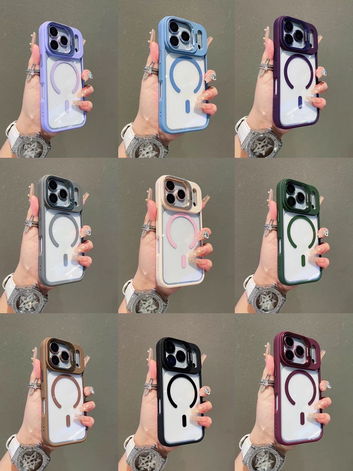 Capa Premium Borda Colorida Magsafe Linha 17 com Suporte na Camera e Película de Lente