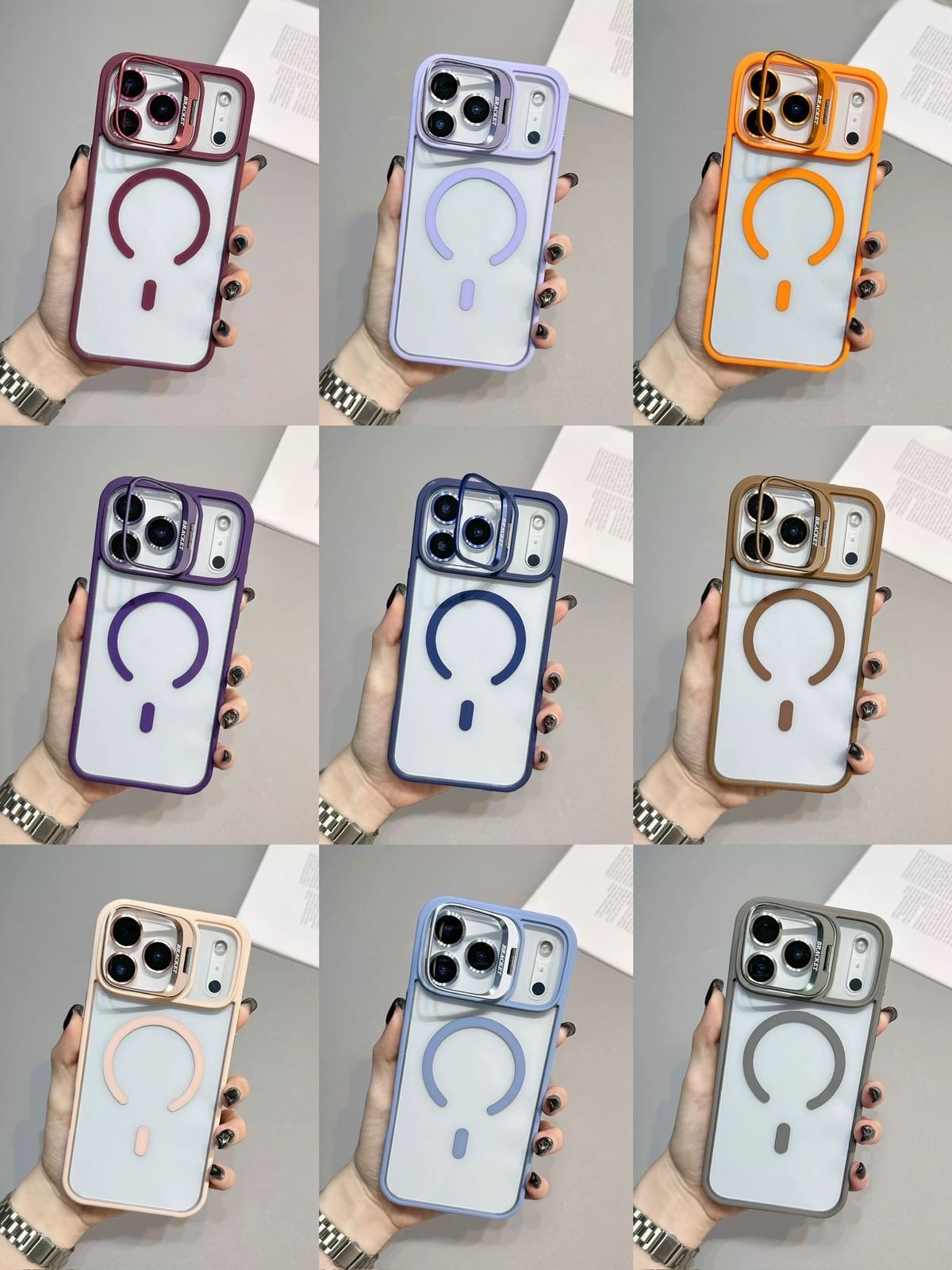 Capa Premium Borda Colorida Magsafe com Suporte na Camera e Película de Lente