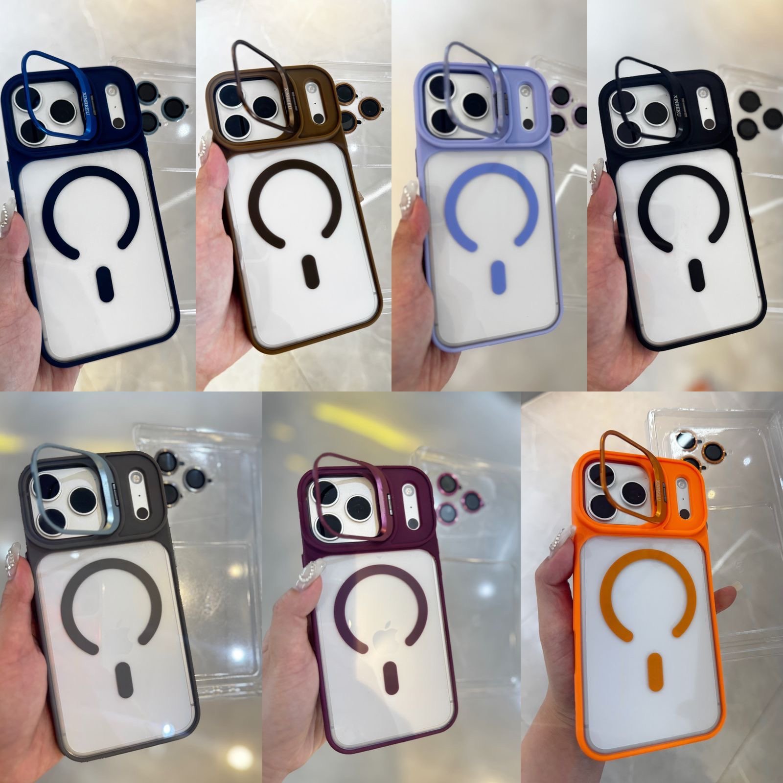 Capa Premium Holográfica Linha 17 Magsafe com Suporte na Câmera e Película de Lente