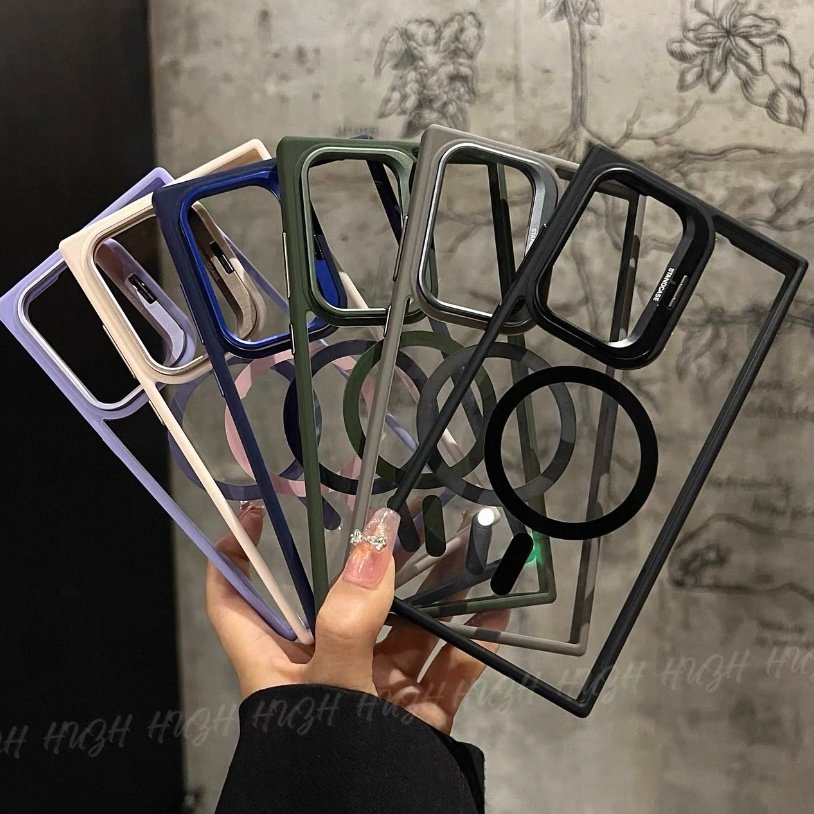 Capa Premium Borda Colorida Magsafe Linha S samsung com Suporte na Camera e Película de Lente