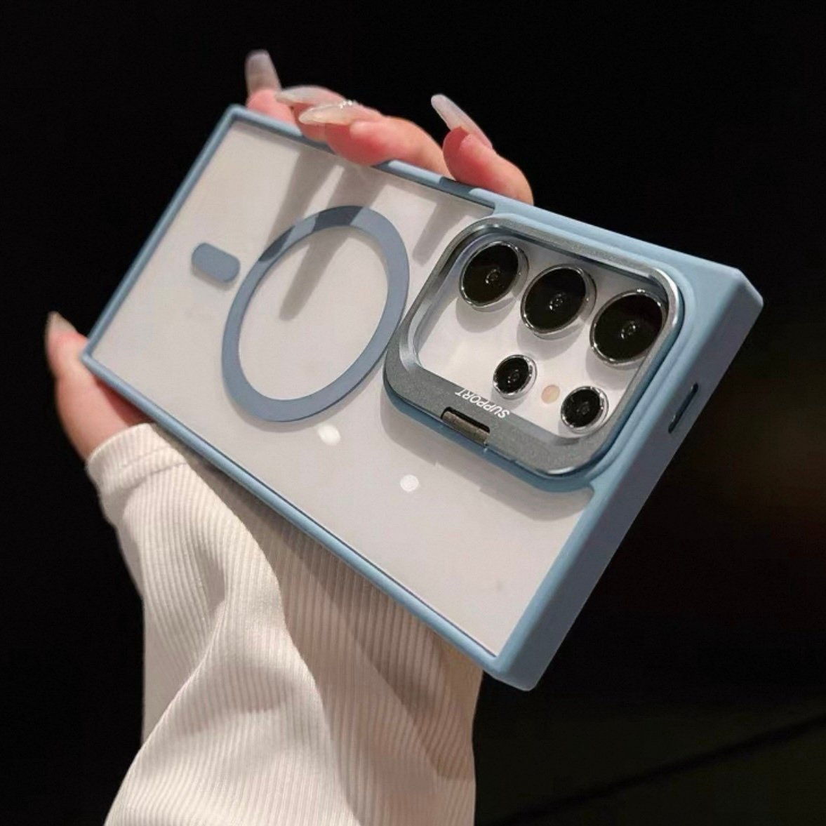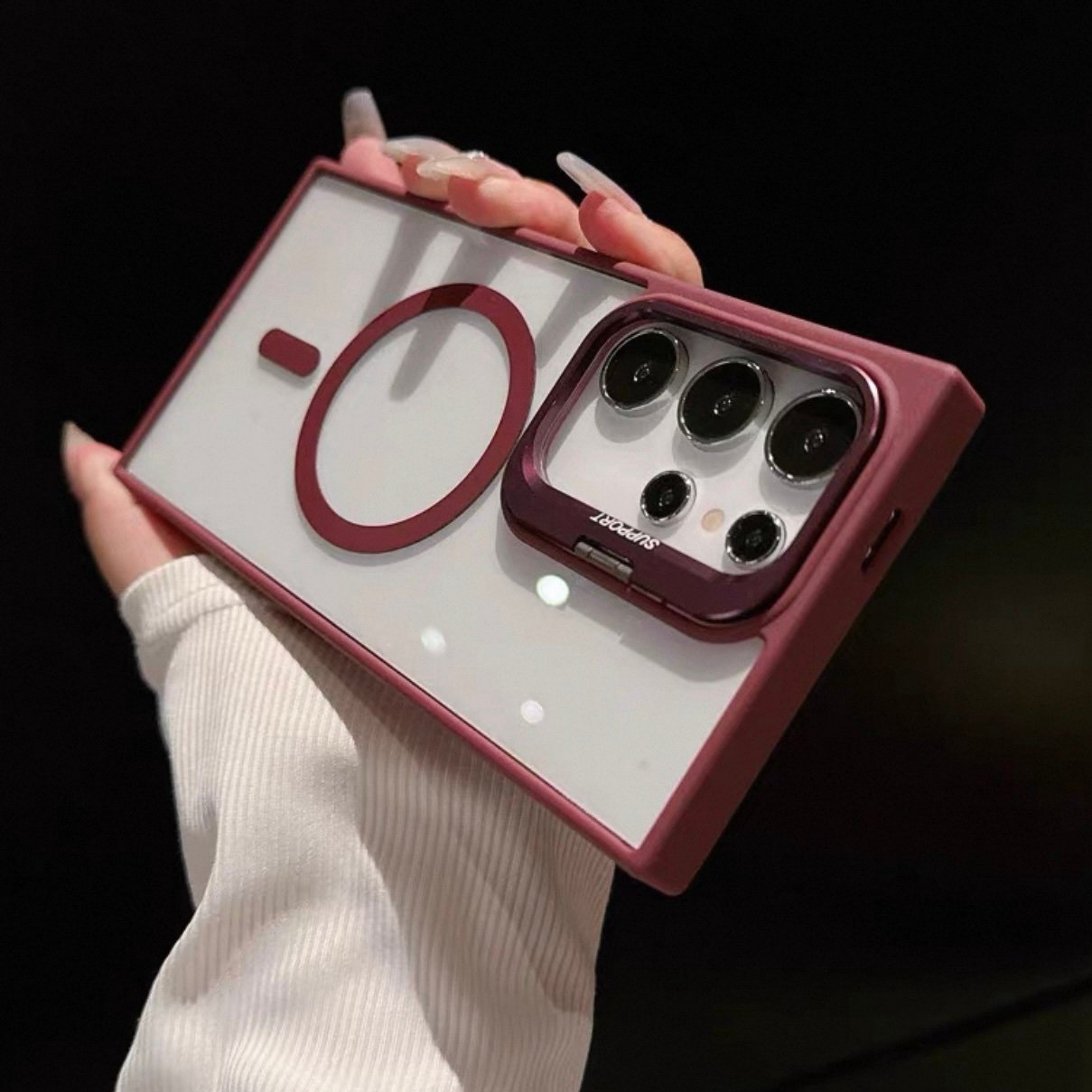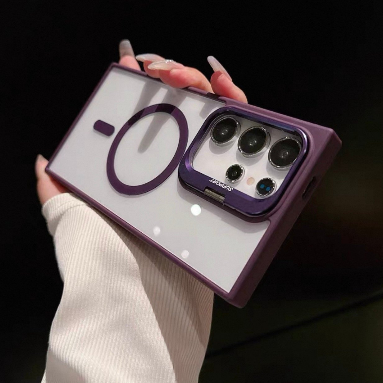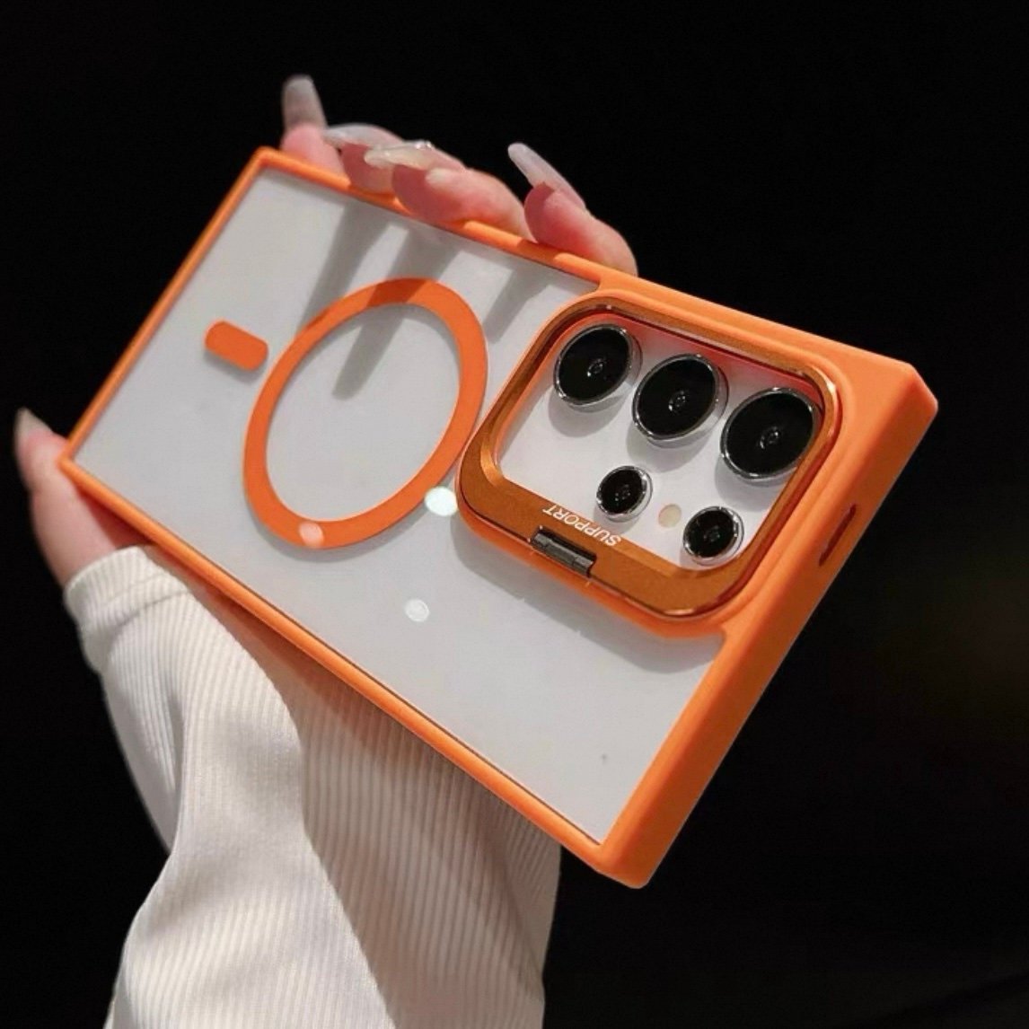 Capa Premium Acrílica Magsafe com Suporte na Câmera e Película de Lente