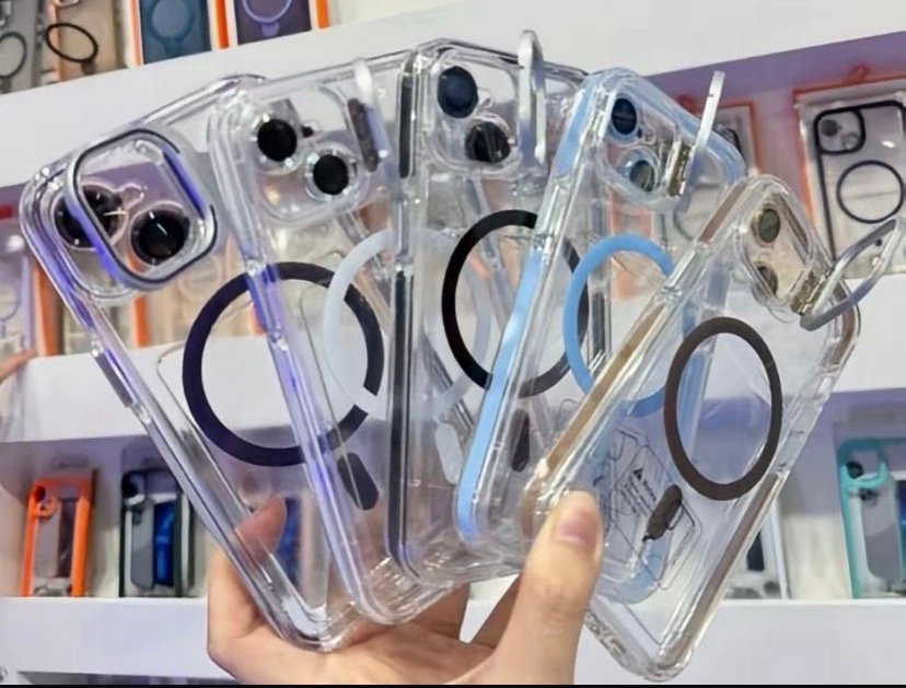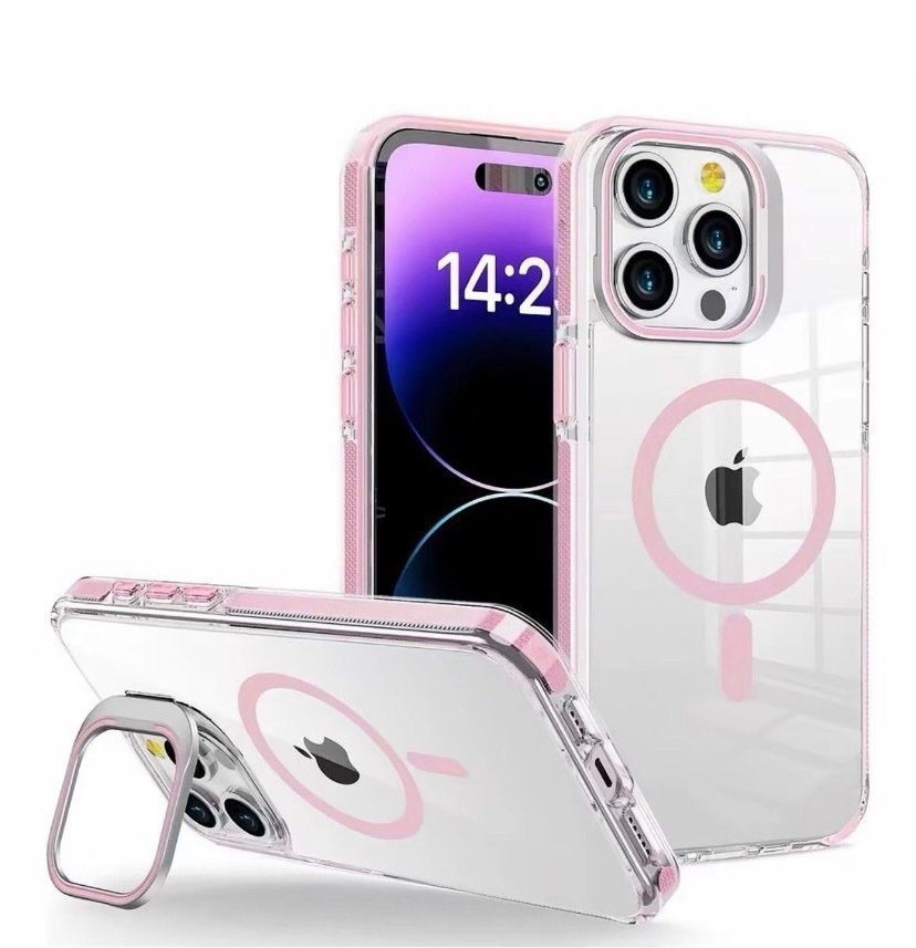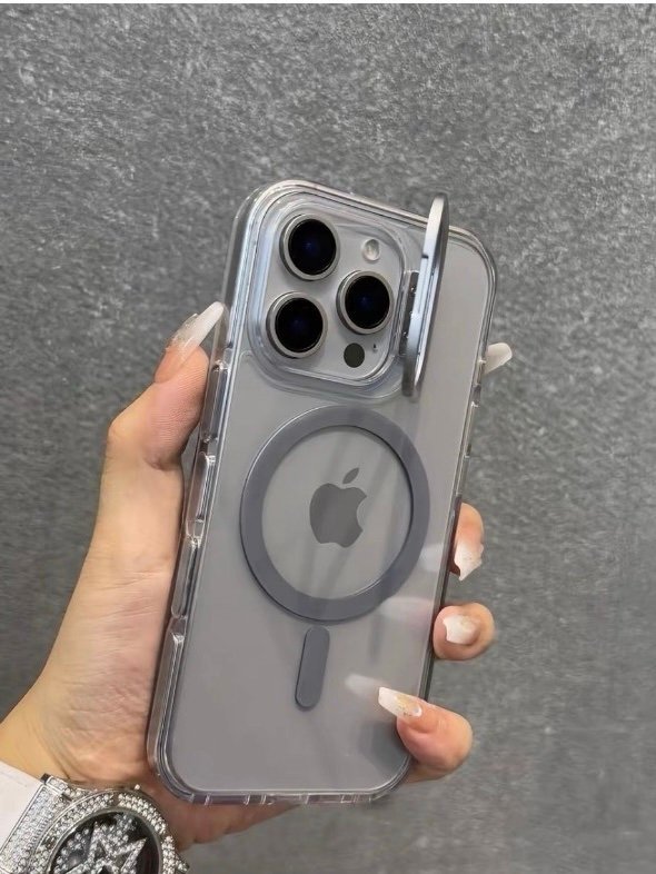 Capa Premium Cristal Magsafe Colorido Com Suporte na Câmera e Película de Lente