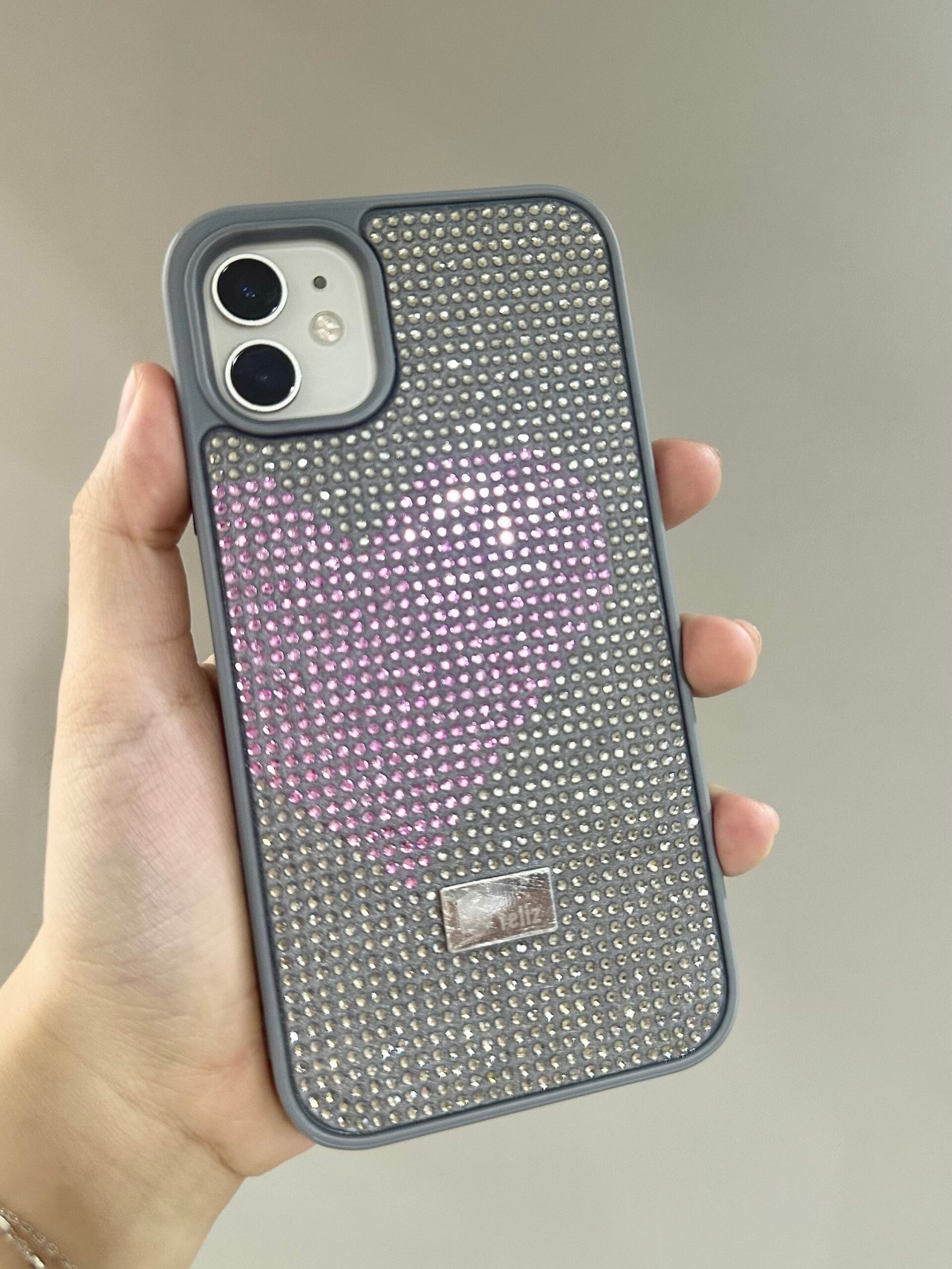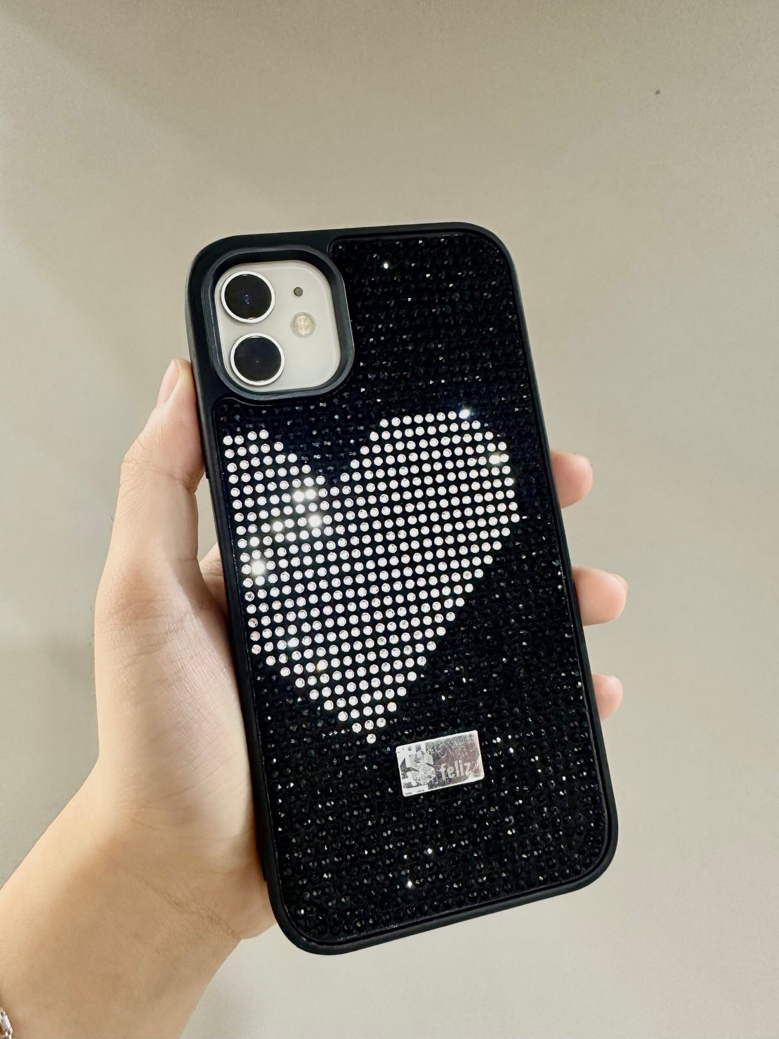 • Brilho Encantador: A parte traseira é coberta por pedrinhas brilhantes que formam um coração, dando um toque de sofisticação e luxo.