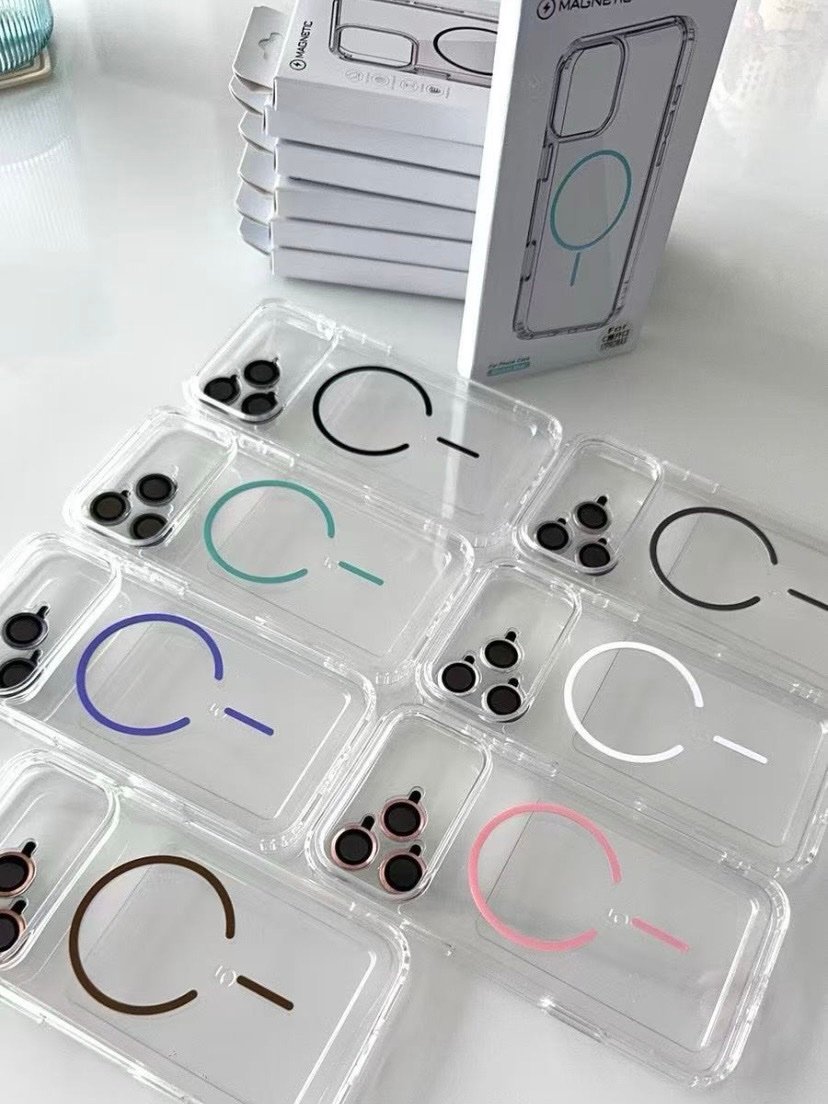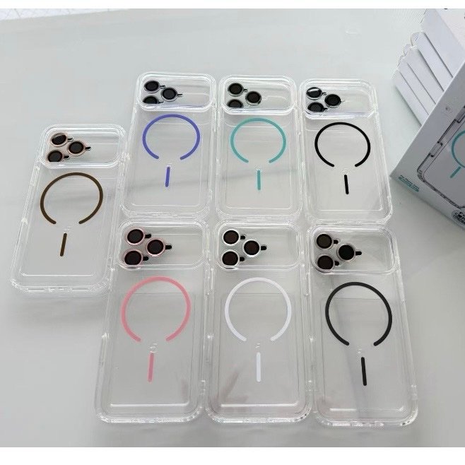 Capa Transparente Magsafe Colorida Anti-Amarela com Películas de Câmera