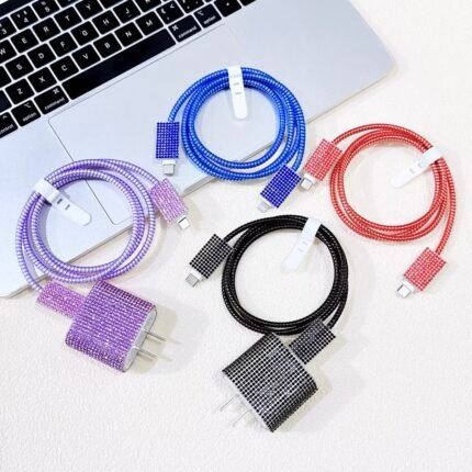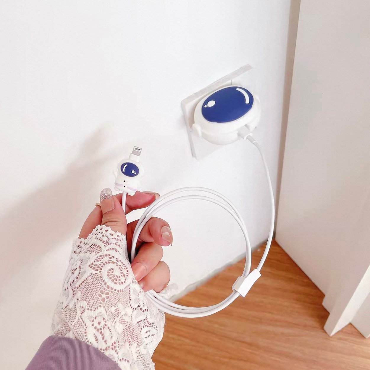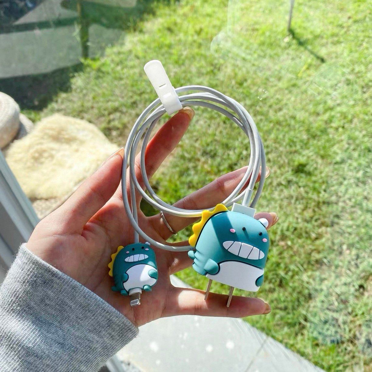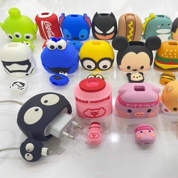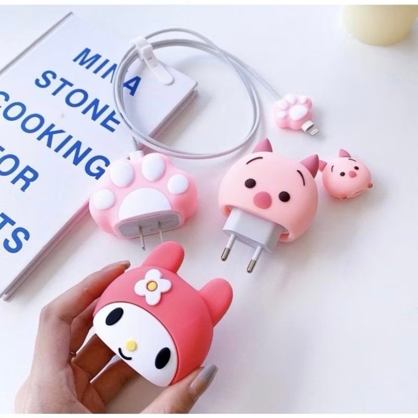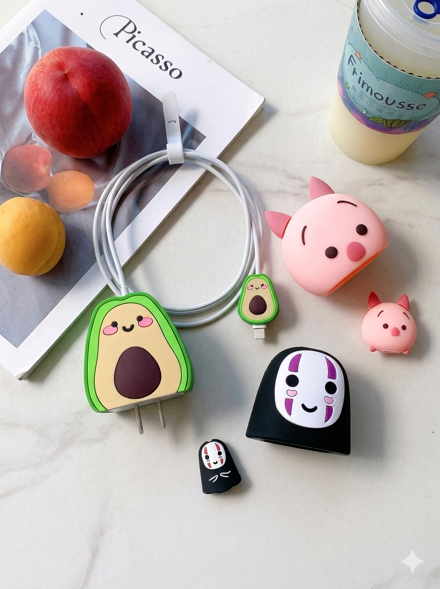 • Proteção Completa: O kit vem com uma capa fofinha para a fonte (tomada) e um protetor combinando para a ponta do cabo, onde ele costuma quebrar.